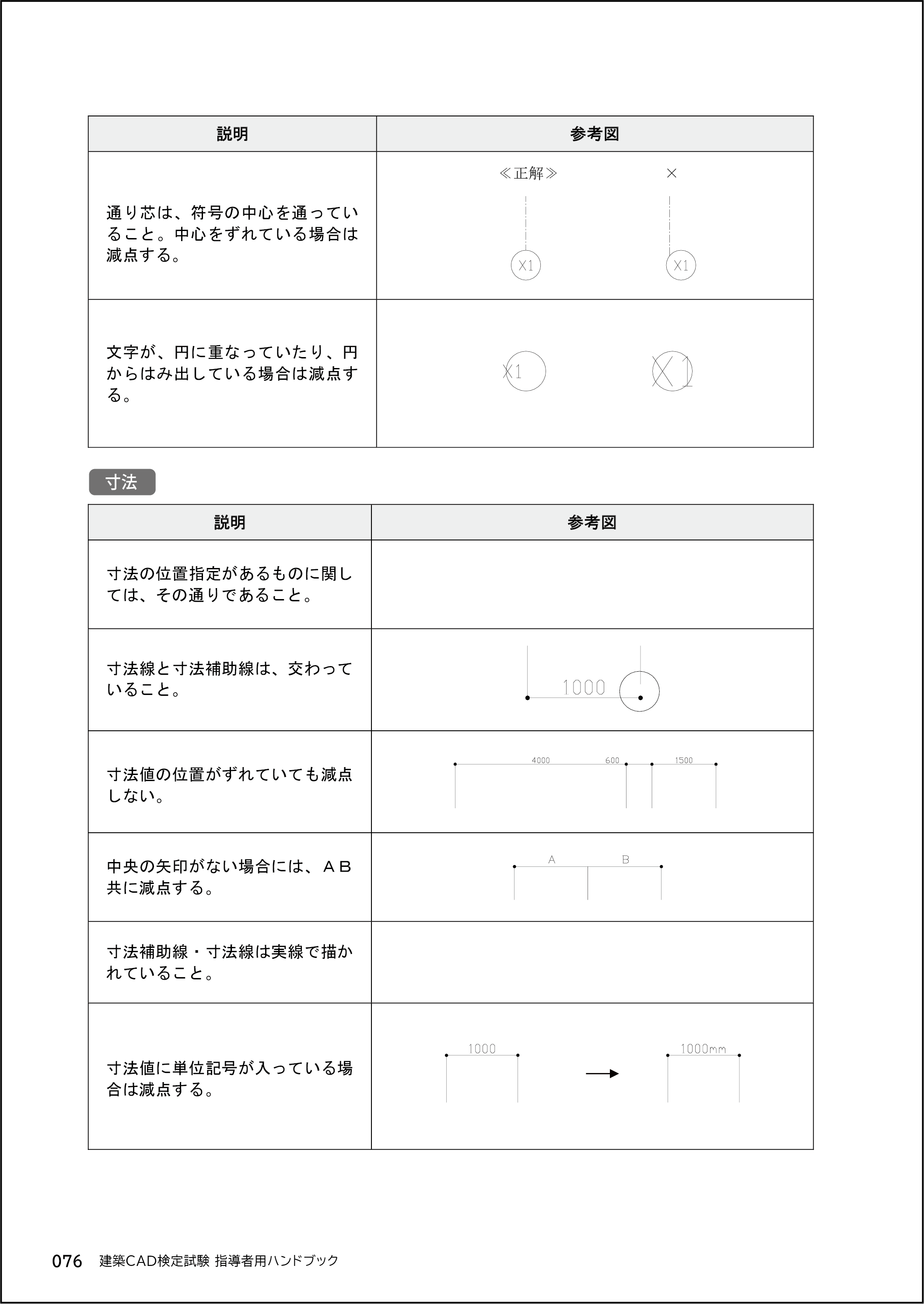 指導者用ハンドブックのご案内本書は、建築CAD検定試験をご指導される先生方を対象にした解説書です。とくに初めて試験認定校に登録された学校のご担当者様、あるいは試験認定校で新たにCAD検定の指導担当になられた先生方にご推奨しております。 編集では、解説する図面を毎年最新の問題に変更し、本文も何か所かを見直して加筆しています。ただし、採点基準表などのように特段変更の無い部分は前年度版と重複するページもございますのでご理解のうえお申込みいただきますようお願いいたします。 建築CAD検定試験 合格のための「指導者用ハンドブック」2023年度版 申込受付中